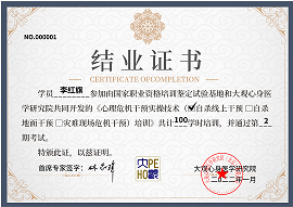 參加以上學(xué)習(xí),考試合格后,可獲得大觀心理危機(jī)干預(yù)與生命教育研究院頒發(fā)的結(jié)業(yè)證書,一個(gè)月后可在http://www.nptb.org/網(wǎng)站查詢成績(jī),2個(gè)月后獲得“*職業(yè)資格培訓(xùn)鑒定實(shí)驗(yàn)基地”頒發(fā)的《心理危機(jī)干預(yù)實(shí)操項(xiàng)目》職業(yè)課程培訓(xùn)證書。