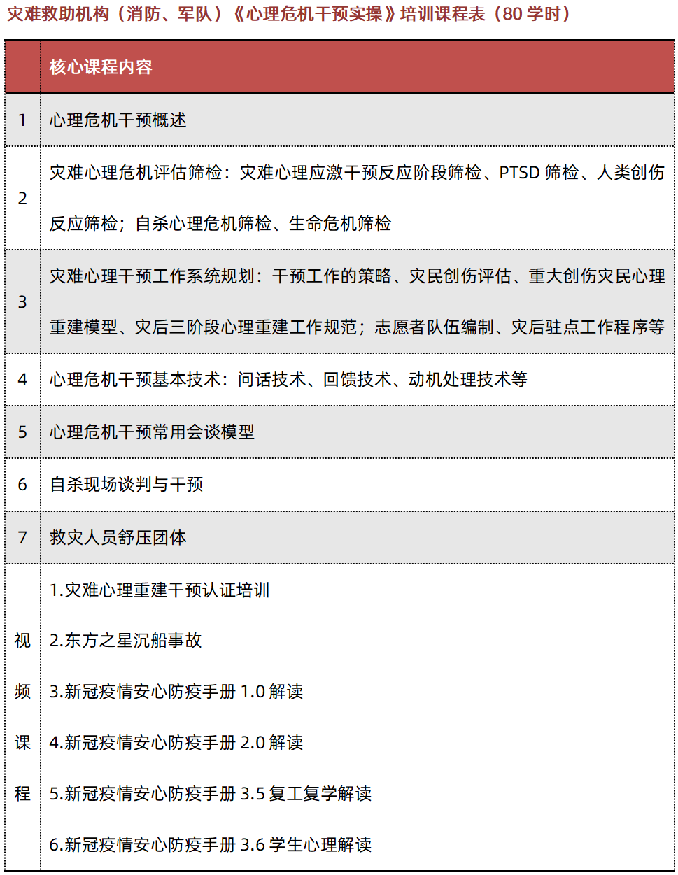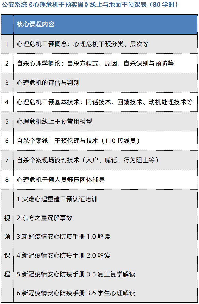 心理危機(jī)干預(yù)系統(tǒng)內(nèi)訓(xùn)參考課表